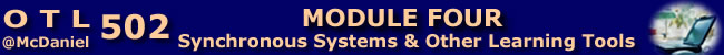 Adobe Connect appears to be the most obvious choice for delivering training or video conferencing. Currently (summer 2008), Skype is getting the most press. It even has a significant Wikipedia entry. As you are exploring Skype, don't miss Skypecasts Can you think of how this synchronous technology can be used in education or training? Watch the discussion board for suggested activities regarding these two programs.
